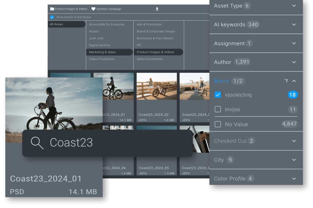 vjoon seven ist Ihre Single Source of Truth für alle Ihre digitalen Assets. Es verwaltet und speichert jede Art von Inhalten mit einem ausgefeilten Metadatenmanagement, das alle gängigen Standards berücksichtigt. Auf diese Weise behalten Sie jederzeit die volle Kontrolle über Ihren gesamten Content im Unternehmen.