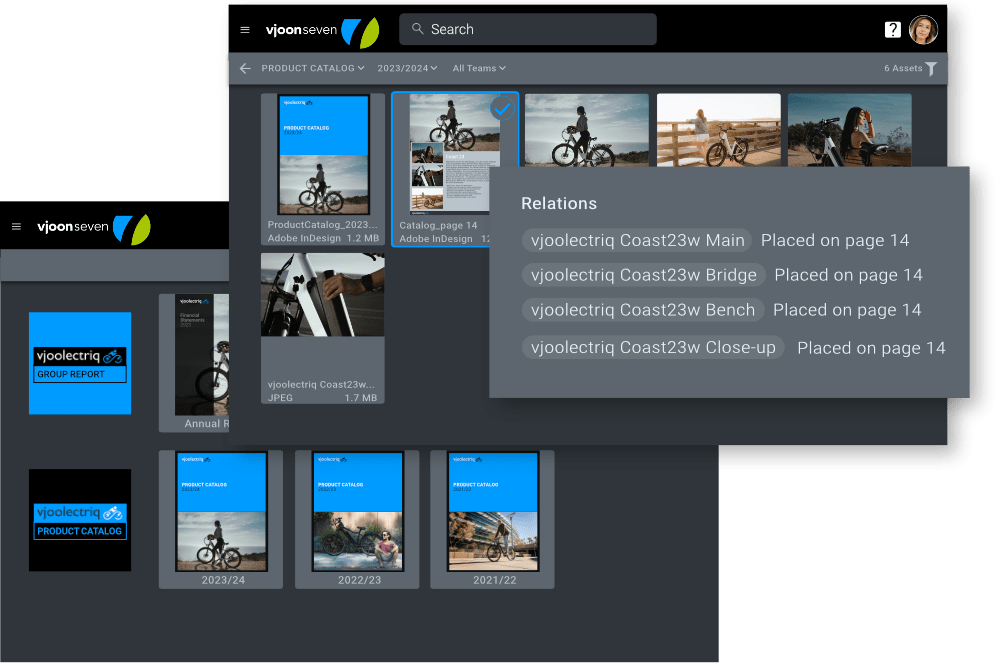 seven will manage this for you. Automatically and silently in the background. You don’t even have to do anything. Thanks to the deep integration with K4, the archiving process can be easily configured as an automated task at the end of every production cycle. The entire issue with all associated content is imported into seven, including all layouts, all assets, and with all relations to each other, keeping everything in a structured and searchable context. And even better, all relations are clickable, and you can quickly access the corresponding assets, variants or collections you need.